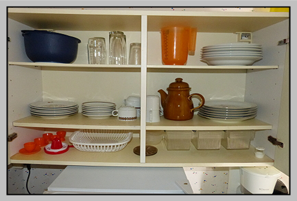 • Aufenthaltsraum mit Stühlen und Tisch , teilweise Polstermöbel, Schrankwand,teilweise Unterschrank mit Regal, Heizlüfter, Spiegel, Radio, Brettspiele